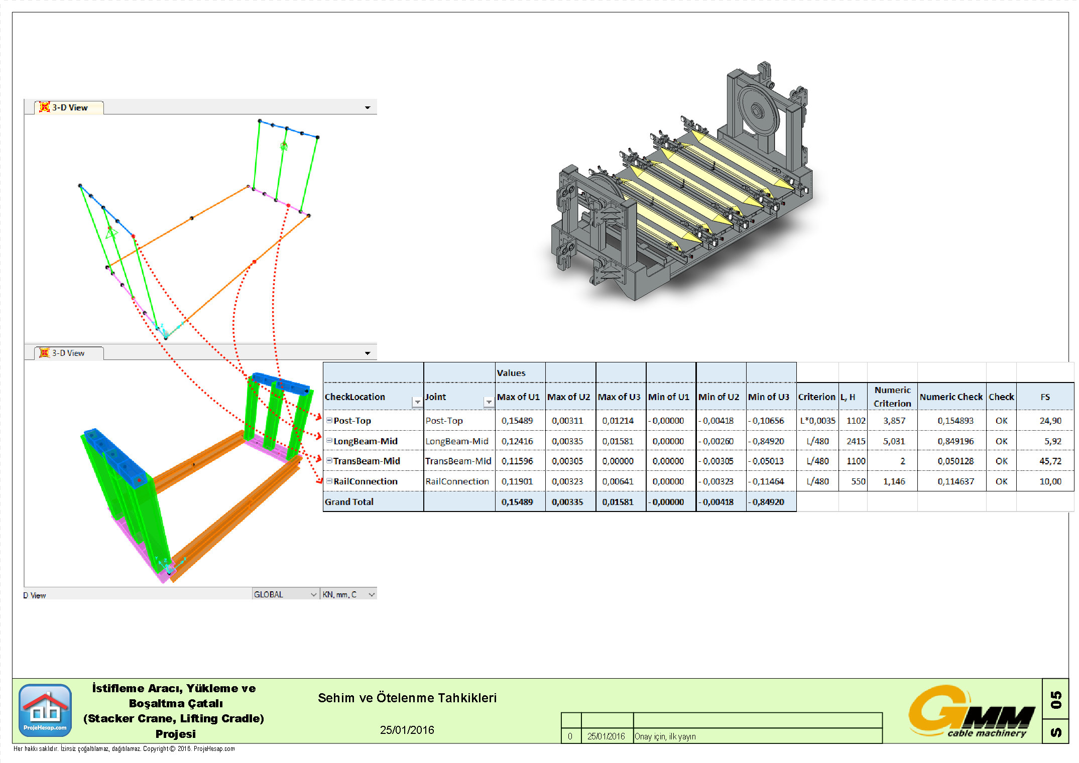 Güven Makina Mühendislik Ltd. Şirketi tarafından projelendirilen konveyor taşıma sitemine ait yapısal hesaplar ve optimizasyon çalışmaları yapılmıştır.