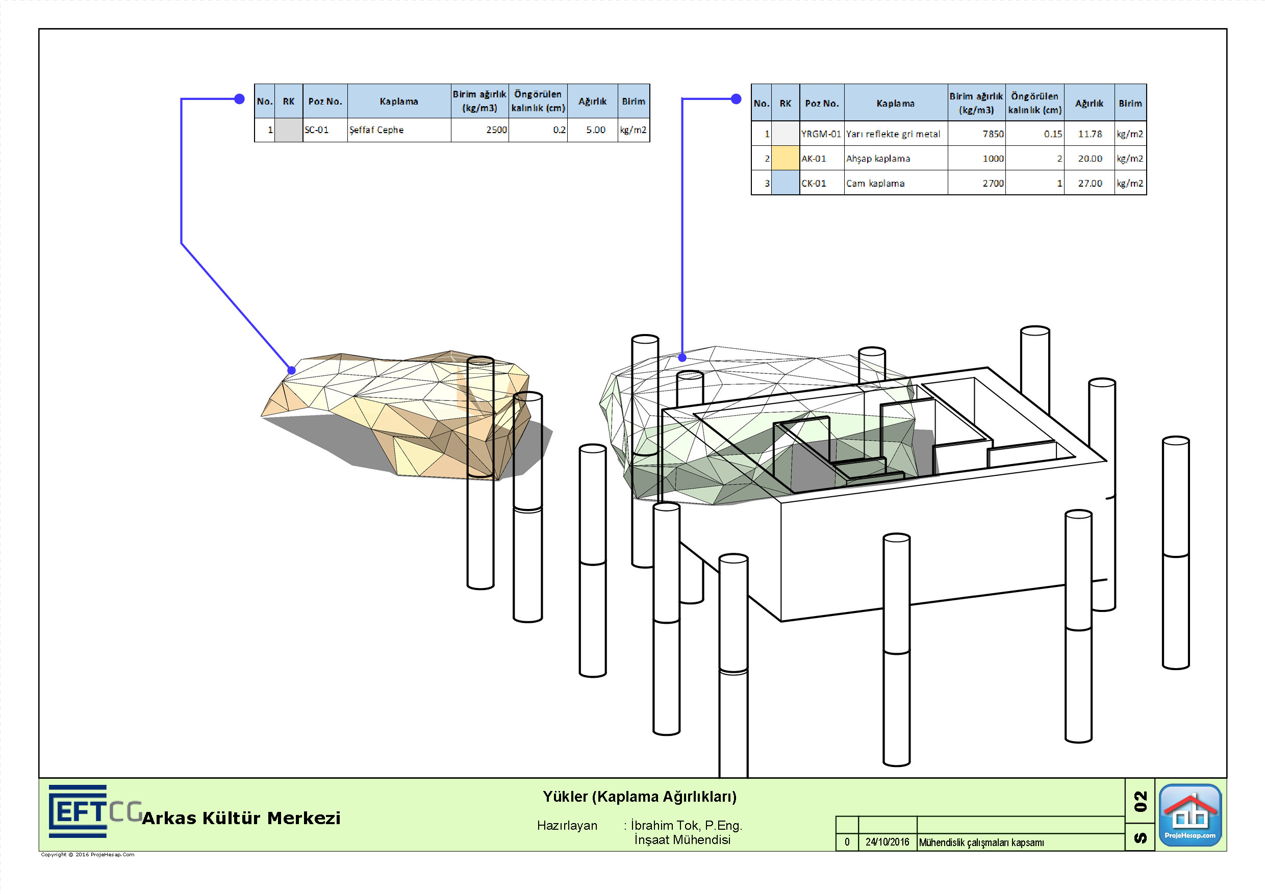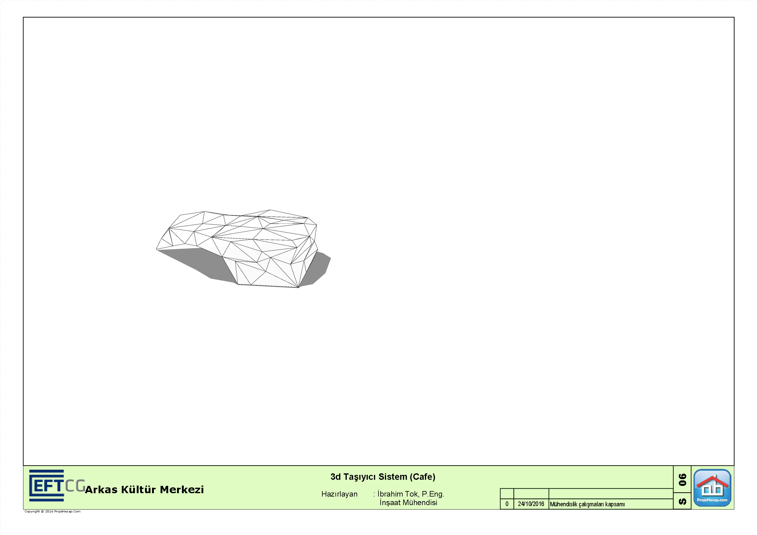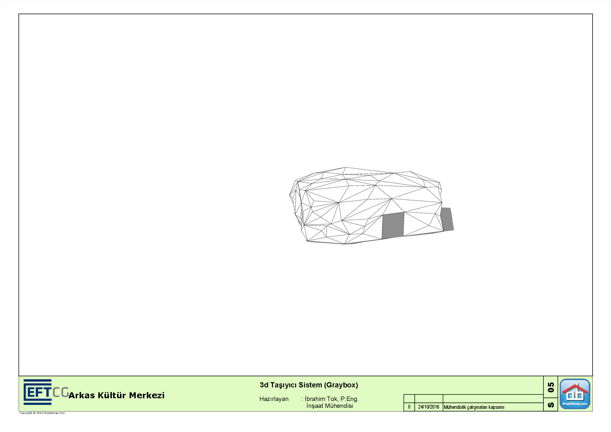 Arkas Kültür Merkezi içerisinde yer alan serbest formlu Cafe ve Greybox alanlarına ait mimari konsept plana ait taşıyıcı sistem tasarım ve hesapları yapılmıştır.