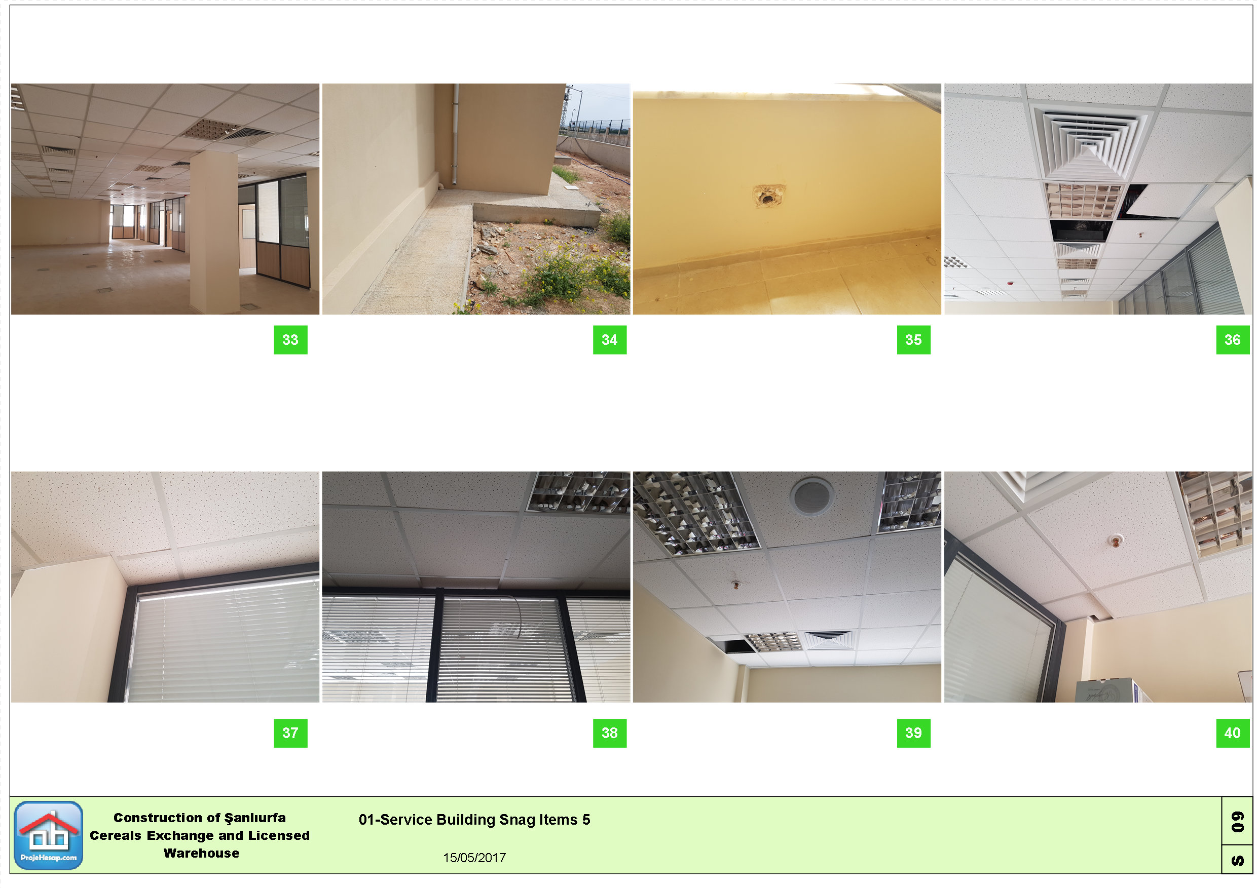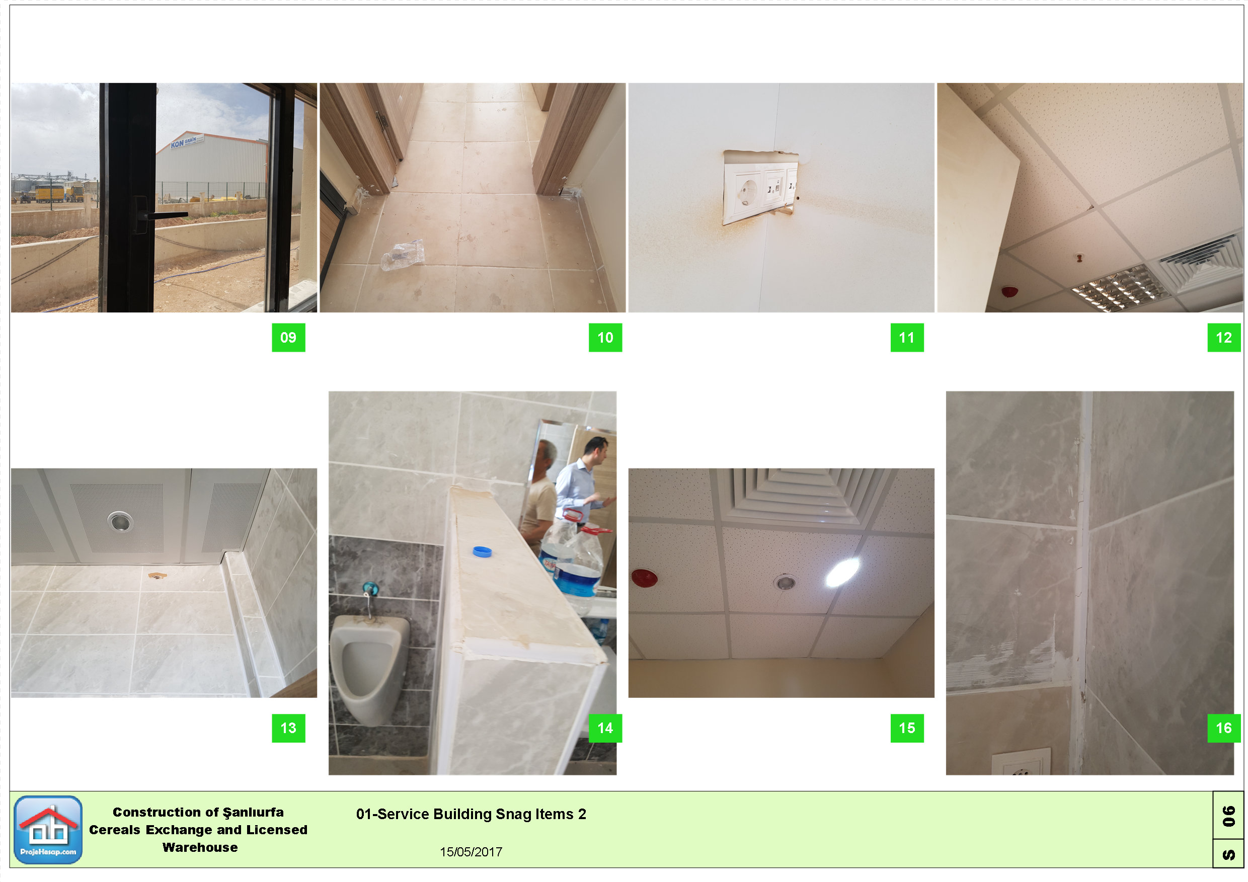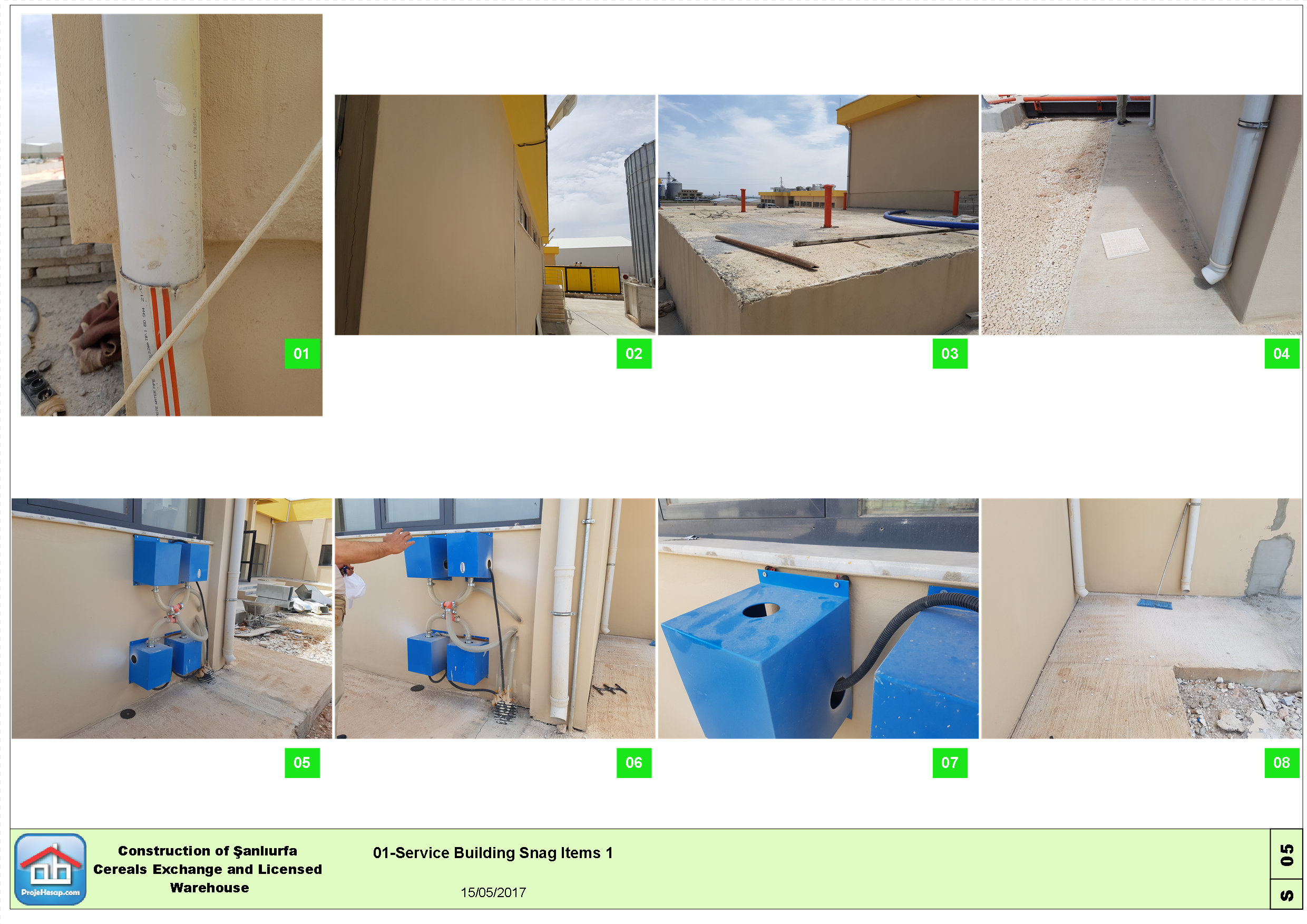 Şanlıurfa Ticaret Borsası tarafından Avrupa Birliği ve Türkiye Cumhuriyeti Bilim Sanayi Teknoloji Bakanlığı tarafından finanse edilen tahıl depolama ve idari tesisleri projesi için geçici kabul öncesi eksik ve kusurlu imalatlar listesi hazırlanmıştır.