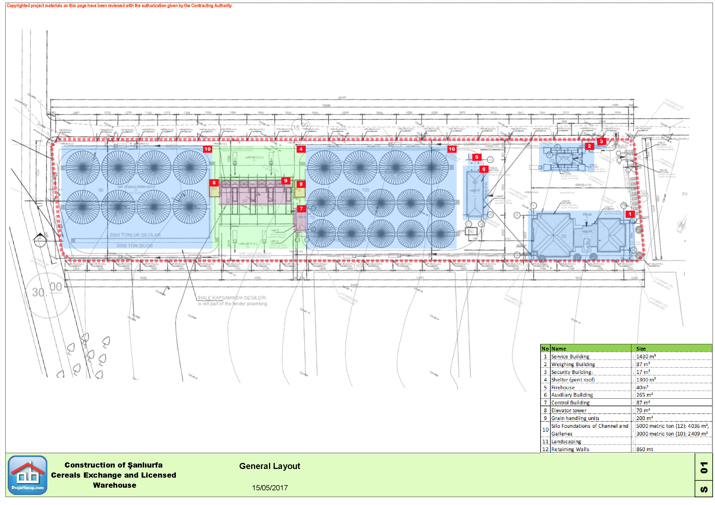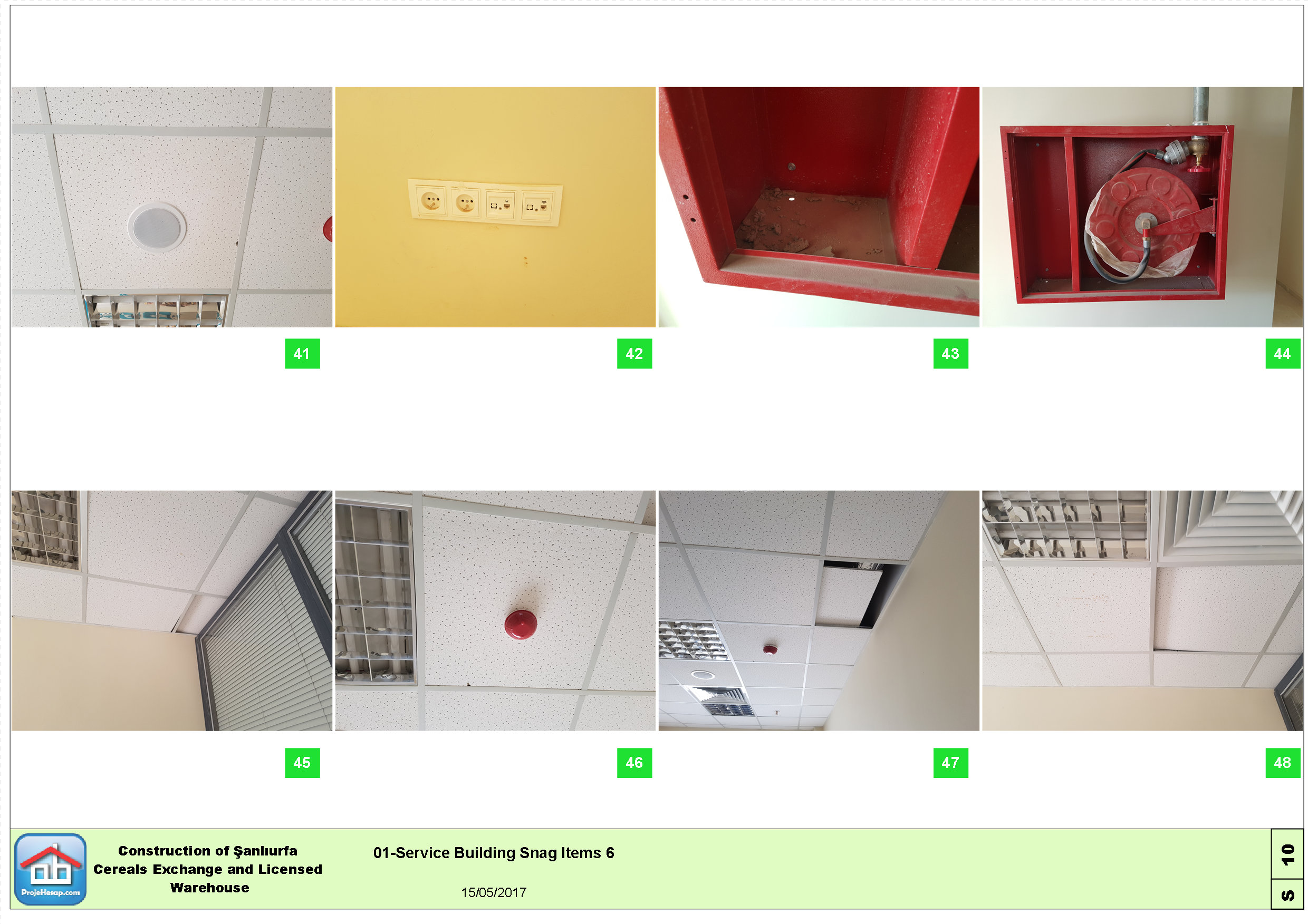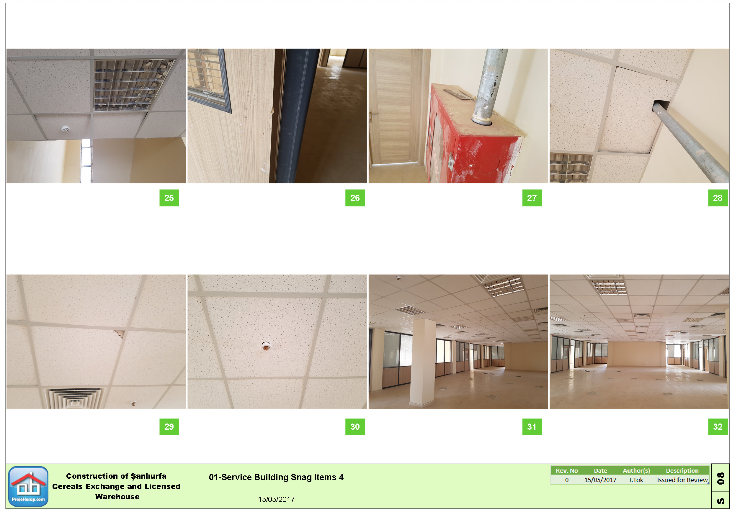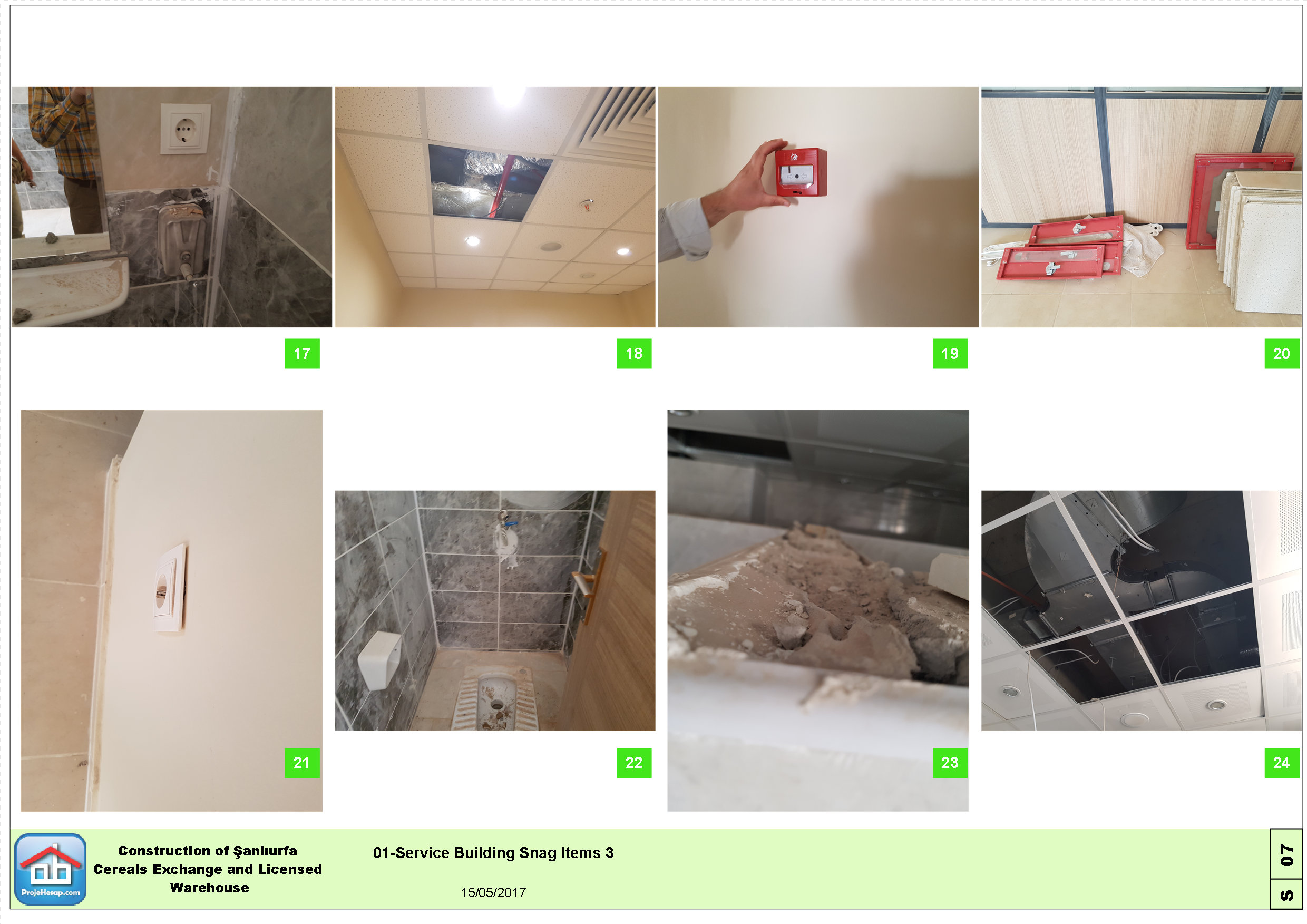 Şanlıurfa Ticaret Borsası tarafından Avrupa Birliği ve Türkiye Cumhuriyeti Bilim Sanayi Teknoloji Bakanlığı tarafından finanse edilen tahıl depolama ve idari tesisleri projesi için geçici kabul öncesi eksik ve kusurlu imalatlar listesi hazırlanmıştır.
